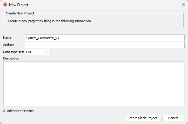 Name it System_Containers_v1. Click Create Blank Project to confirm.