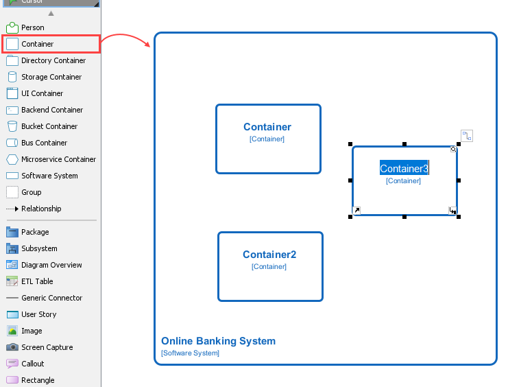 | System Boundary | Dashed rectangle around containers | Groups all containers belonging to your system |